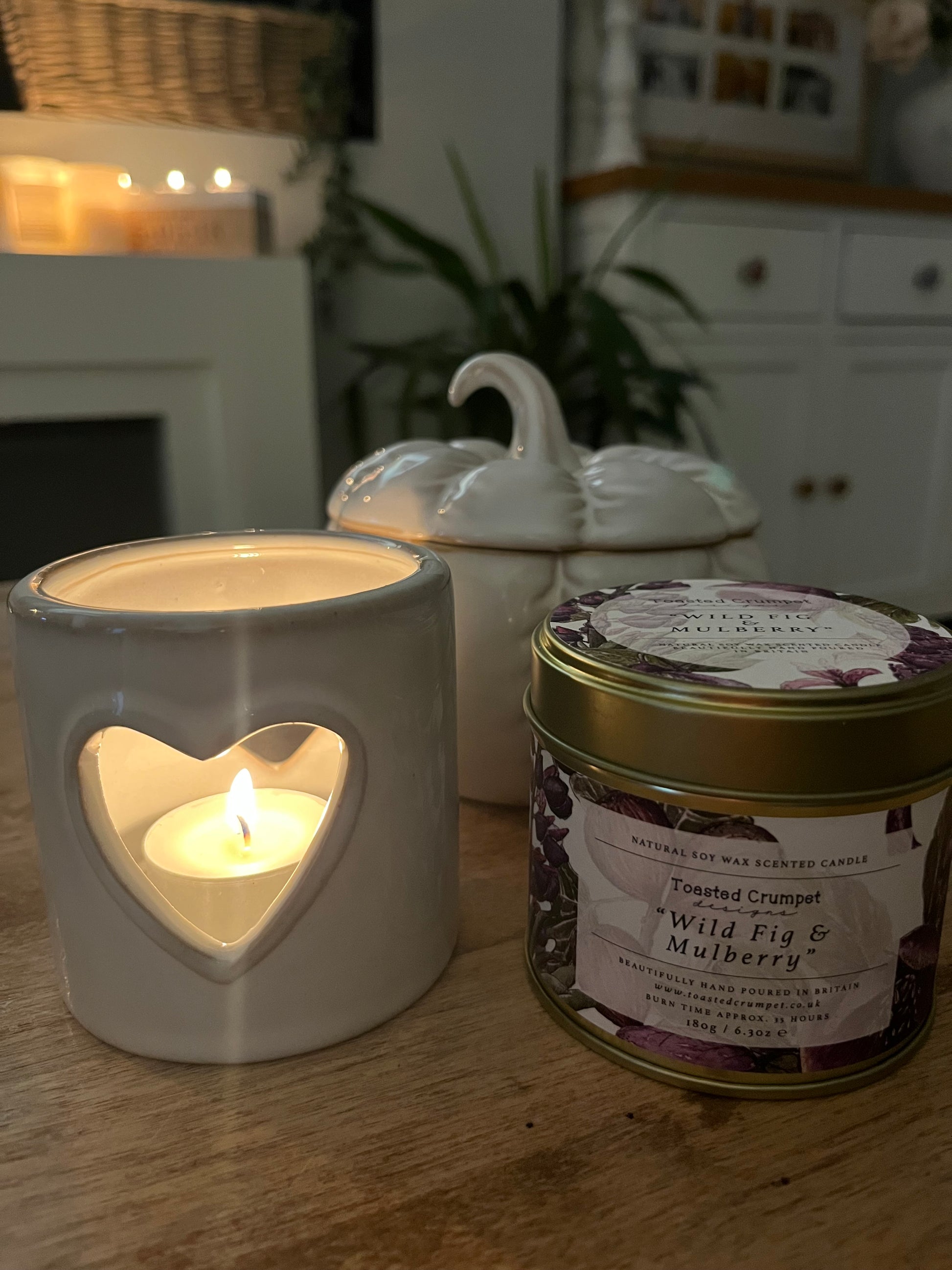 Glazed Ceramic Tealight Holder With Heart Cut-Out Detail